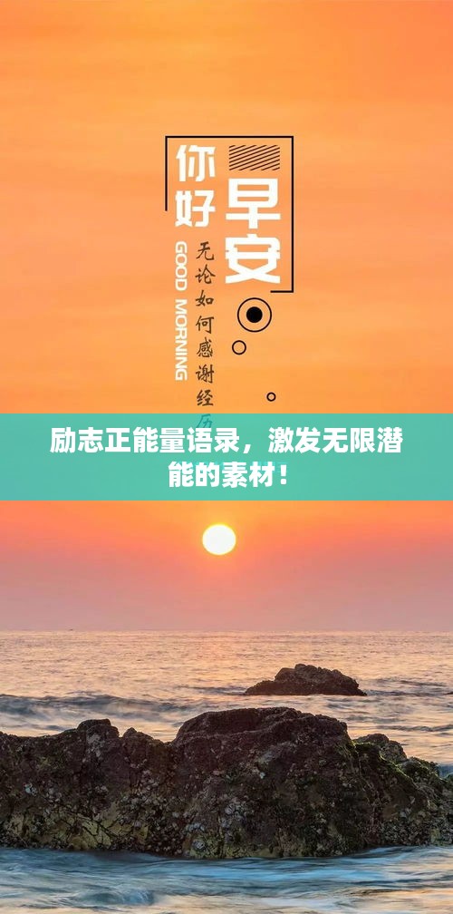 在这个充满挑战与机遇的时代,我们需要不断地激励自己,给自己注入正能量,通过励志素材的了解和学习,我们能够明确目标和梦想,培养毅力和坚持的品质,增强自信和勇气,不断学习和成长,而正能量语录则能够为我们提供心灵的滋养,鼓励我们勇敢面对困难与挑战,坚定信念,追求梦想,让我们把励志素材和正能量语录作为心灵的指南针,指引我们前行,成就美好未来。