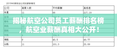 随着航空行业的飞速发展,越来越多的人对航空公司的员工工资产生了浓厚的兴趣,本文将为您揭示航空公司员工工资的排名榜,带您了解航空业的薪酬秘密。