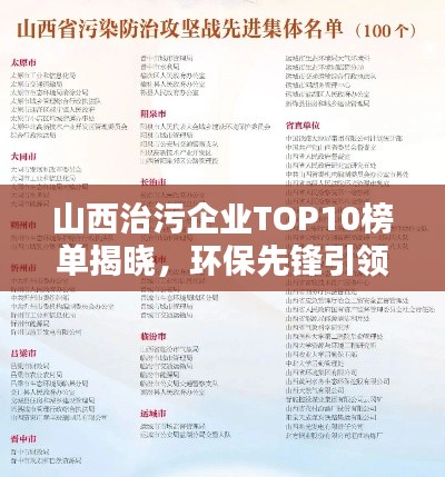 随着环保意识的日益增强,山西治理污染的企业也在逐步崭露头角,本文将为您介绍山西治污企业排名前十名,这些企业在环保领域取得了显著的成绩,成为行业的领军者。