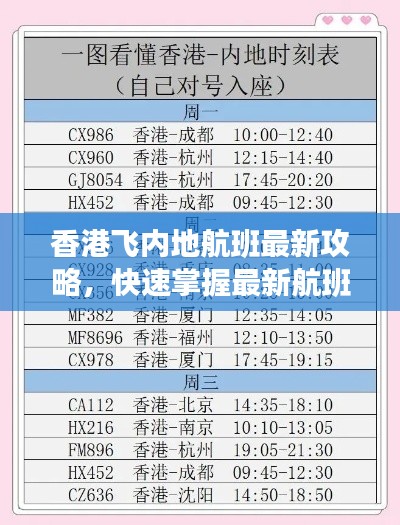 近年来,随着内地与香港的交流日益频繁,往返两地的航班需求不断增长,本文将为大家提供一份详尽的香港飞往内地最新攻略航班,帮助大家更好地安排行程,享受愉快的旅程。